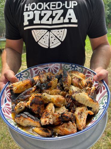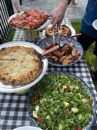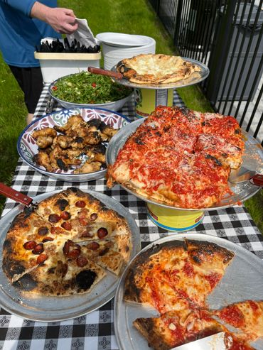 Our menu consists of Pizza, oven roasted wings, salads and various sides that can be added Ala carte. Our dough is made fresh for every party. We use a blend of quality flours and ferment every batch for 48 hours giving our pizza a crispy finish with outstanding flavor. We top every pizza with high quality mozzarella and fresh ingredients that are hand picked for every party. to make your party one that will be remebered.